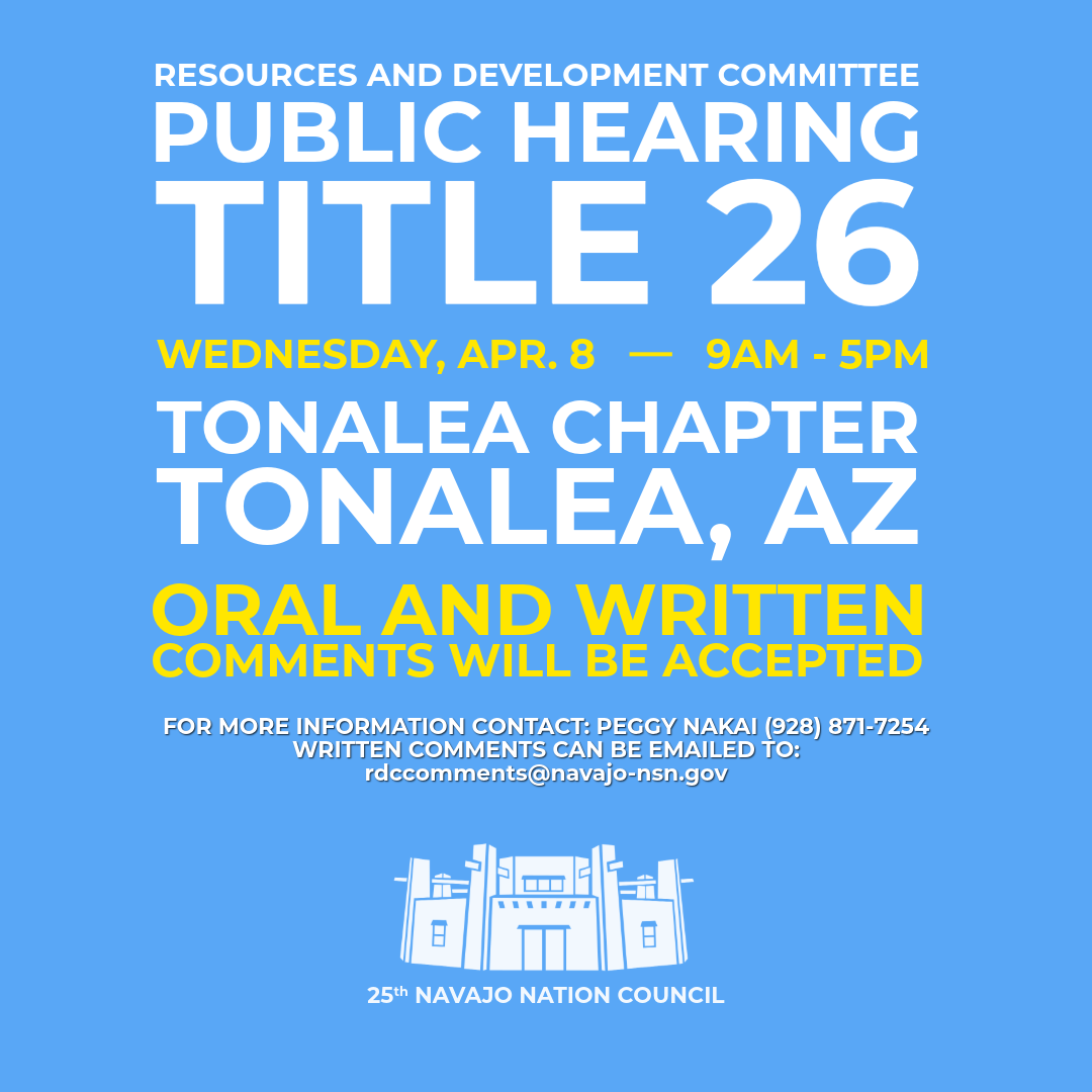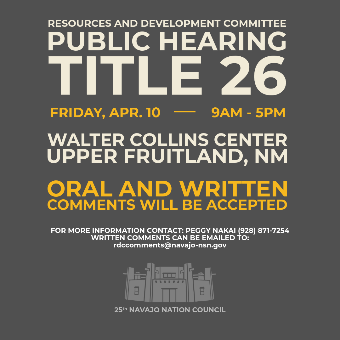 Naa’bik’iyati’ Committee regular meeting on March 26, 2026 at 10:00am (Navajo Nation Council Chambers)