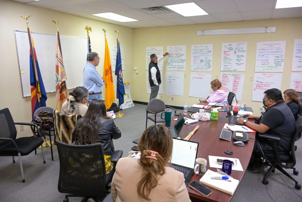 The Missing and Murdered Diné Relatives (MMDR) Task Force was established by the Naabik’íyáti’ Committee to address the alarming crisis of violence, murder, and missing persons affecting Diné people. Focused on advocacy, healing, and justice, the task force employs a holistic approach that includes data-driven initiatives, community engagement, and the development of vital programs like victim services. Through partnerships across tribal, state, and federal levels, the MMDR Task Force seeks to create solutions and pathways for justice and safety, honoring and protecting the Diné community.